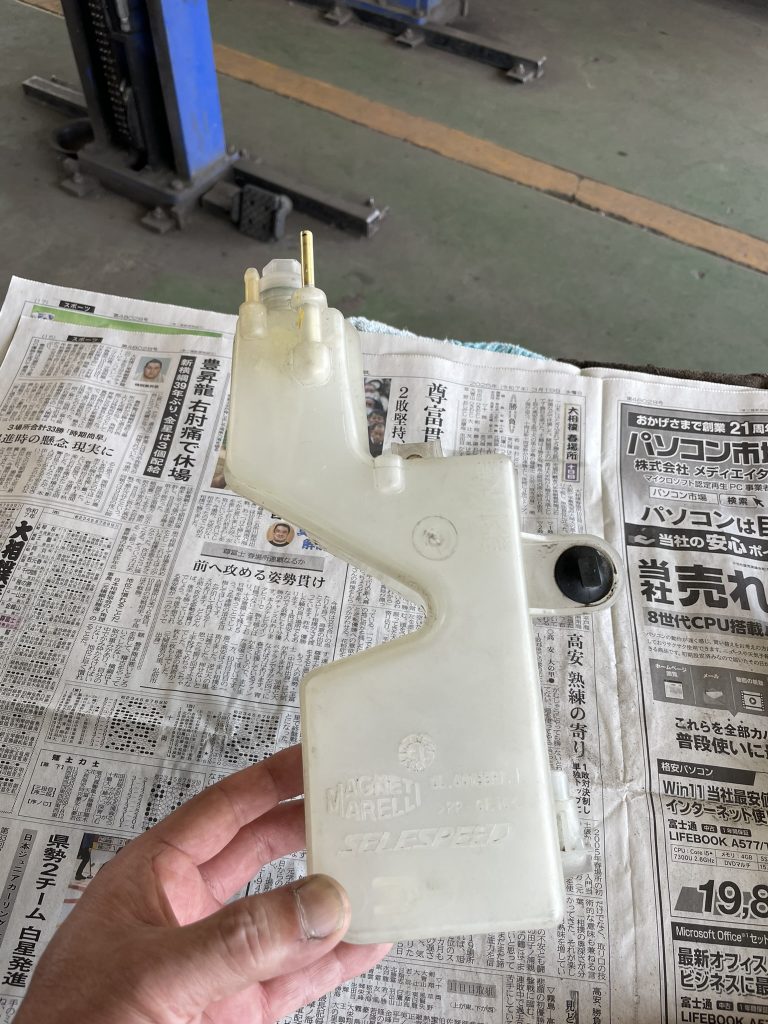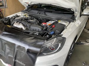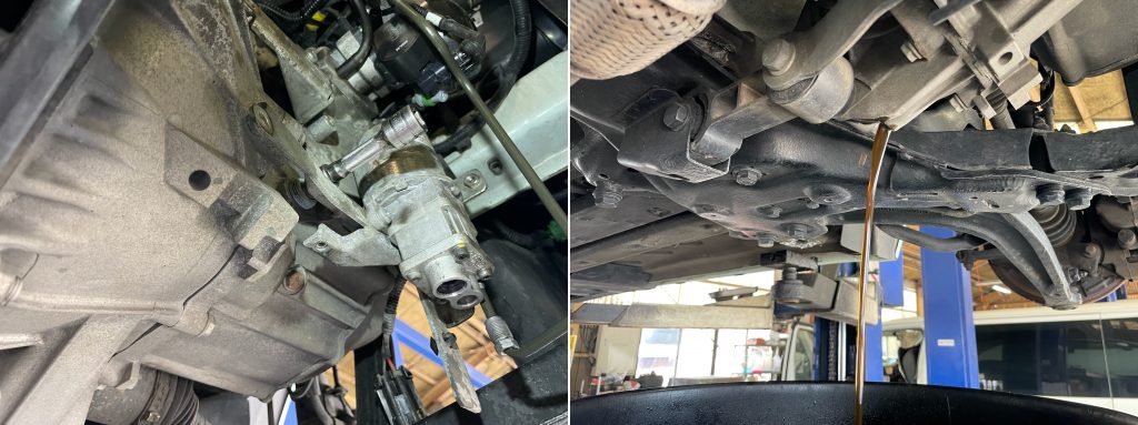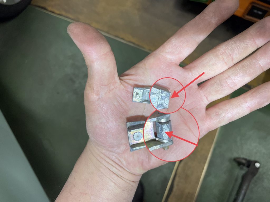 ご用命内容は通常の車検整備の他に、①運転席ドアハンドルのリンクが破損してハンドルが戻らないのでリンクの交換、②デュアロジックオイルの交換です。先ずは車検整備から作業開始です。