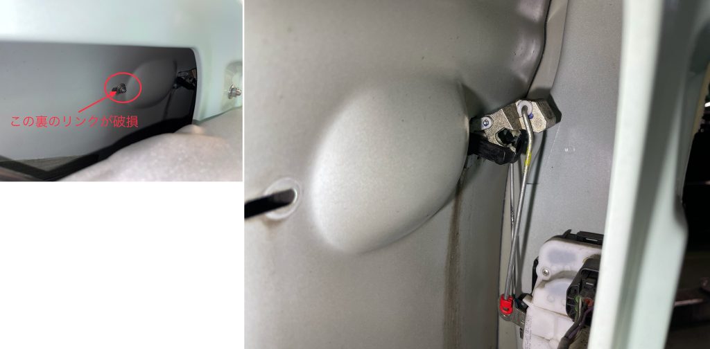 リンクはお客様にお持込で、少しドアハンドルの戻りがきついですが機能は回復しました。