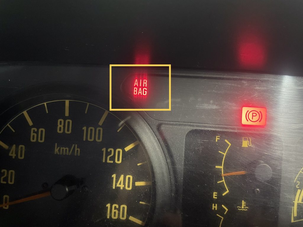 エンジンを始動したら、突然エアバッグの警告灯が点灯してしまった車両の修理です。