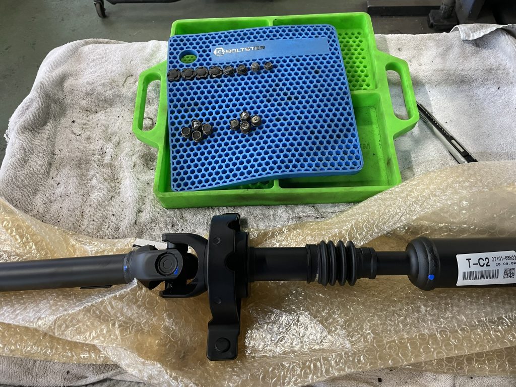 ユニバーサルジョイント単体での部品供給が無いので、新品のフロントプロペラシャフトへ交換します。
