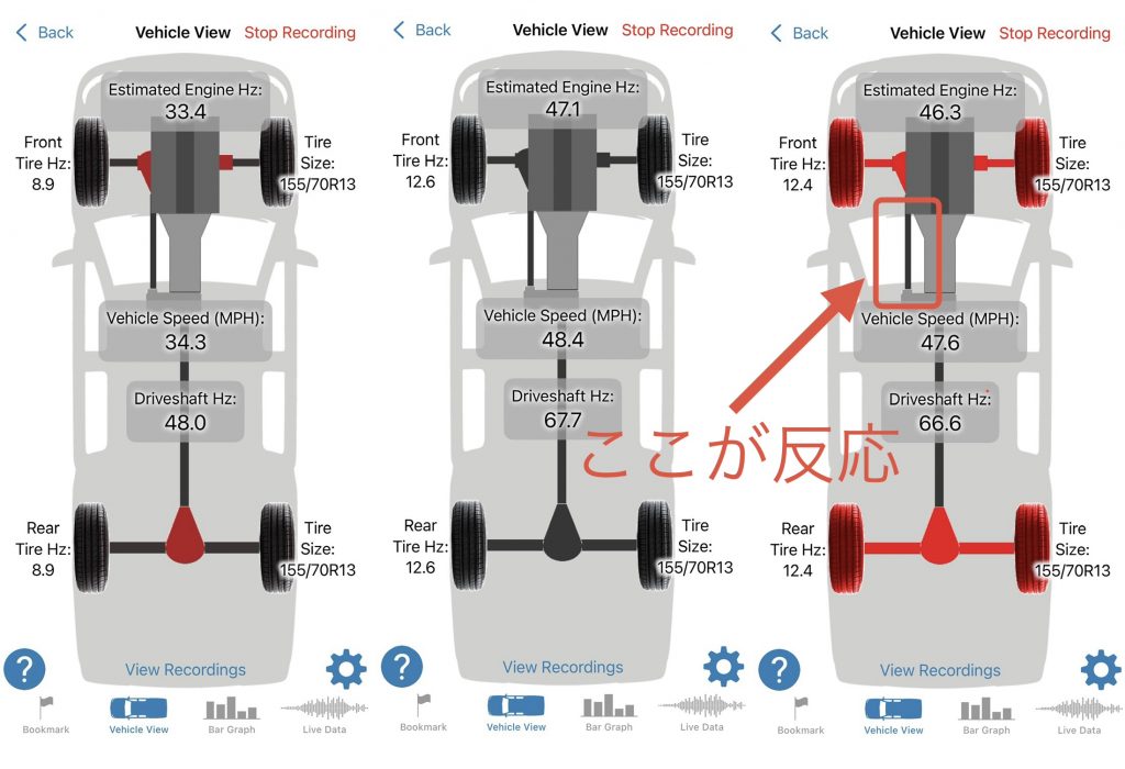 走行しながらのスクショだったので、うまく撮れなかったのですが、お客様と症状確認した速度域でフロントプロペラシャフトで反応がありました。車両を点検すると…